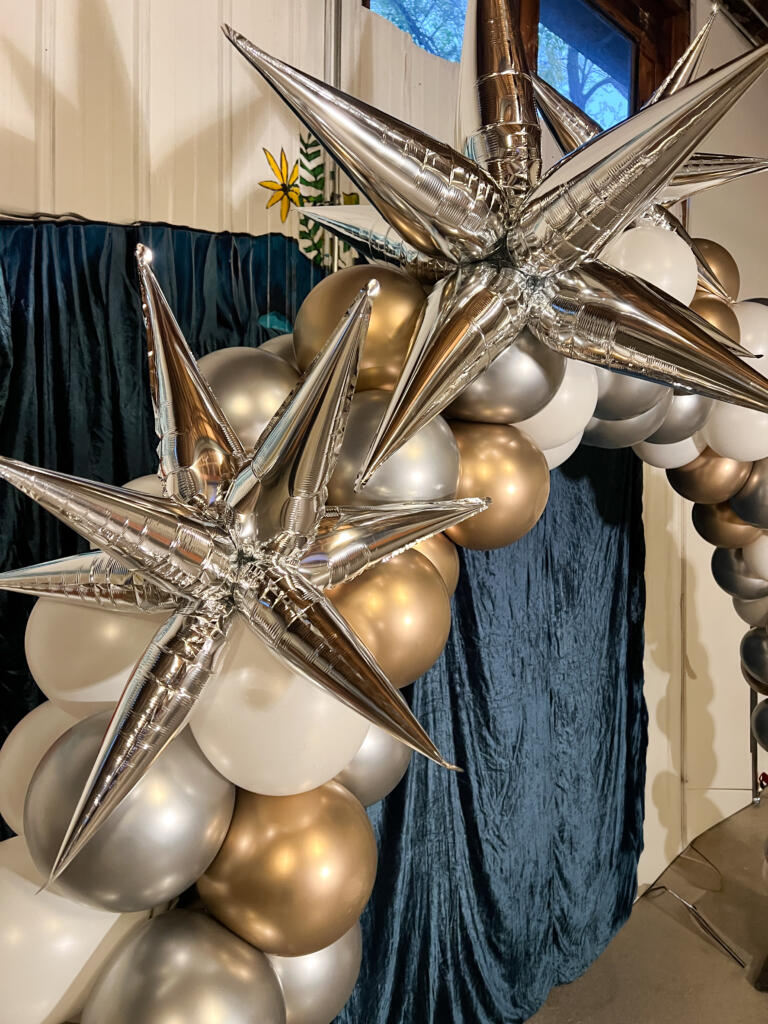 A shimmering, high-impact structure built with metallic Mylar balloons for maximum shine and longevity.