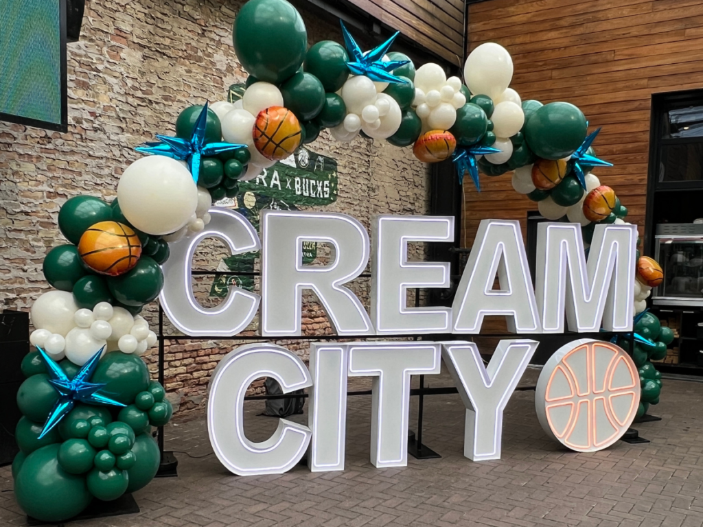 LED letters pair beautifully with arches, columns, and garlands to create a complete, cohesive event installation. We design and install custom balloon displays for corporate events and private celebrations across the Milwaukee area.