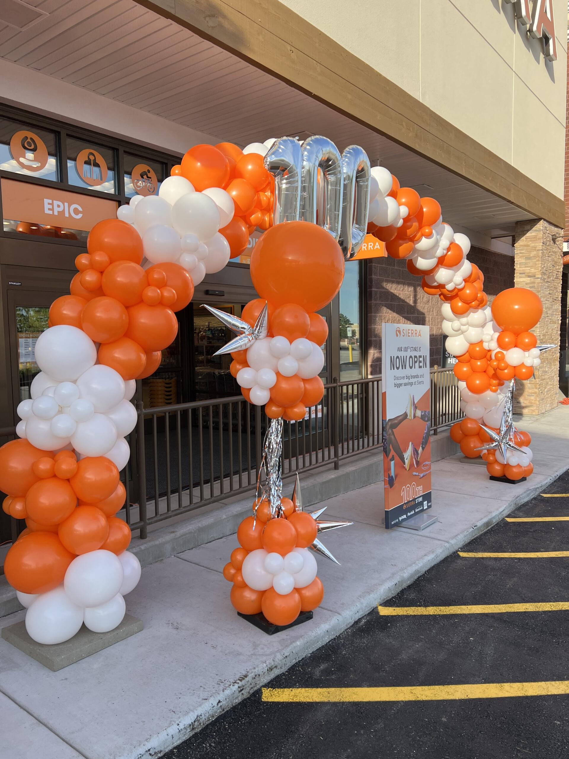 Balloon displays that highlight entrances, sales events, and in-store promotions.
